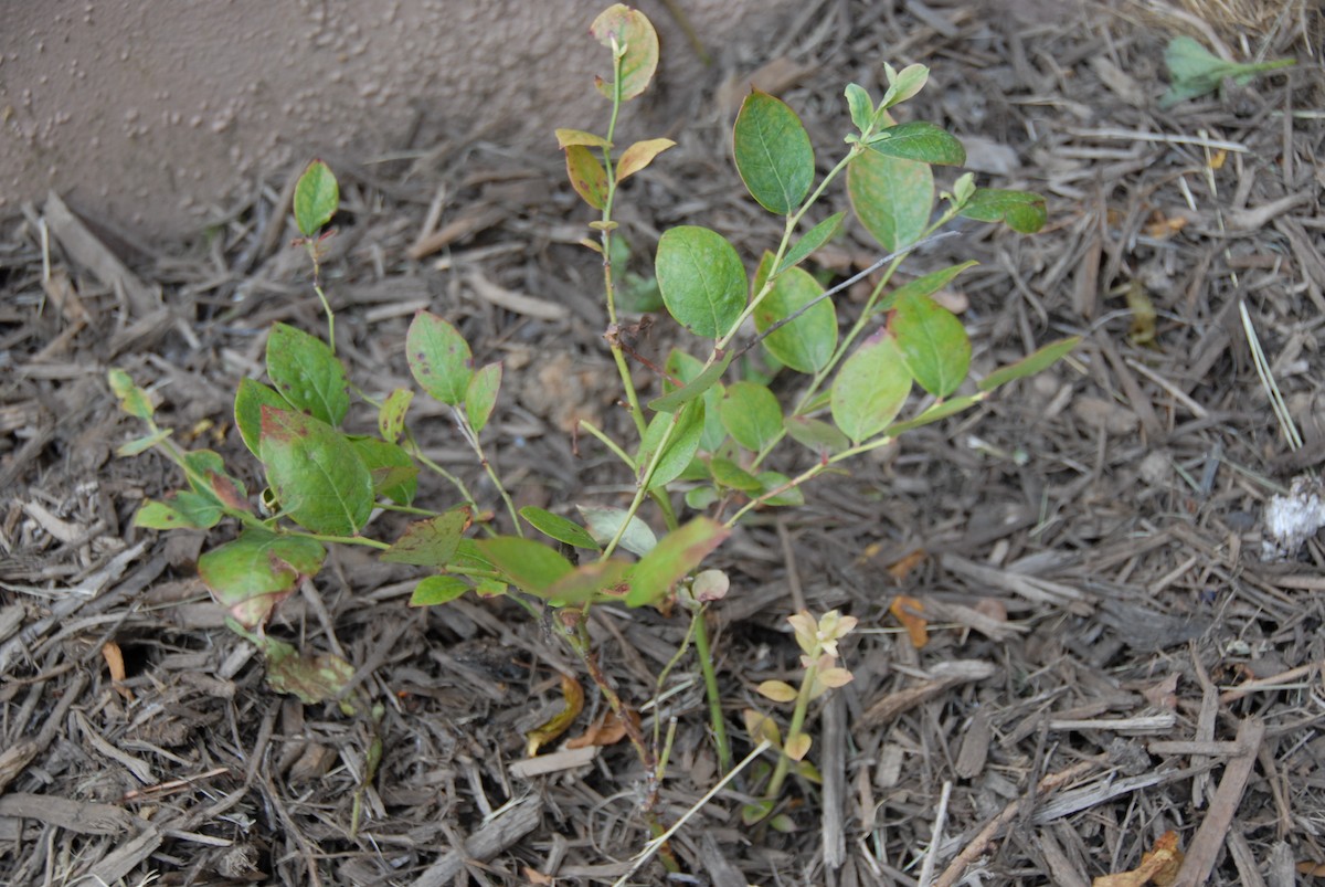 Caption: New Bluecrisp plant recently planted - note new shoot coming up