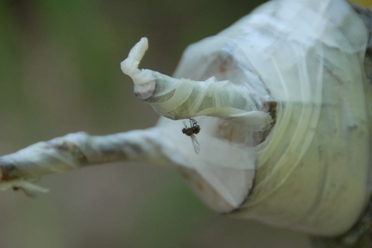 Caption: Dead fly on new graft. I see lots of these dead flies, not sure what they are doing.
